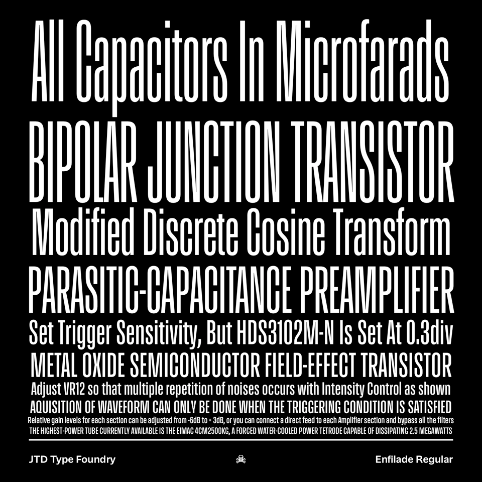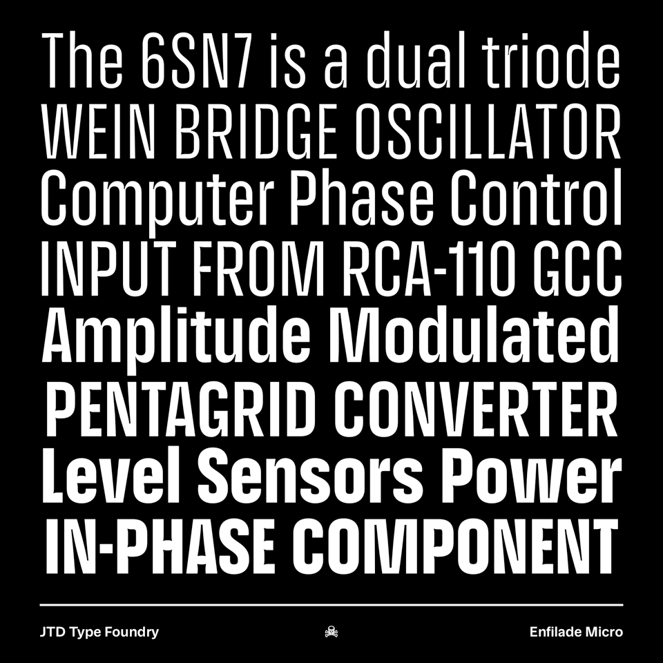 Enfilade is now entering its third year of (seemingly endless) development. We recently updated the version available at FutureFonts with a new optical size: Micro.